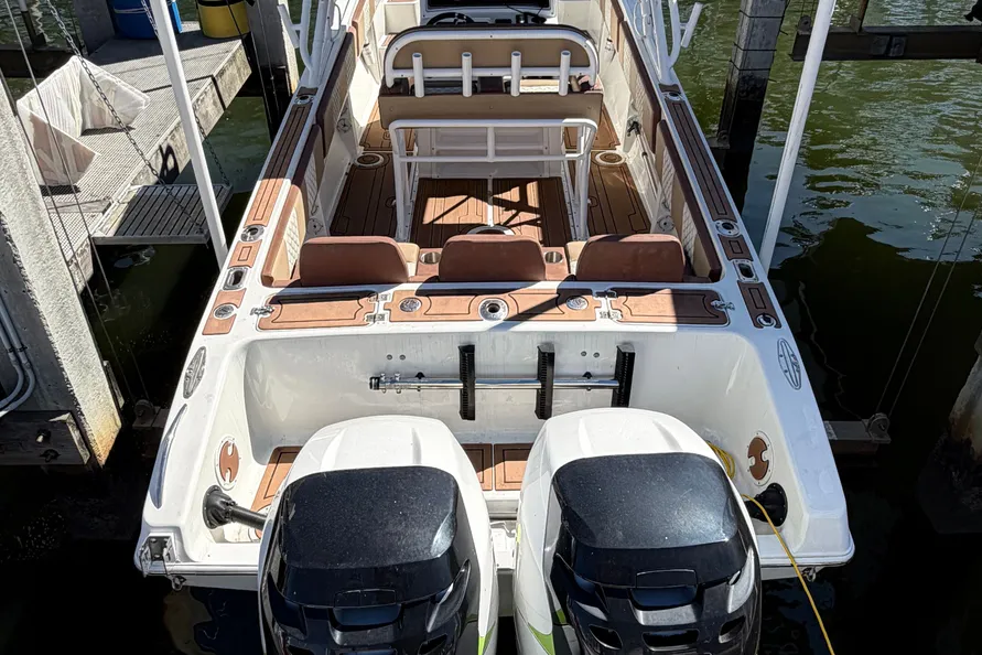 Powered by twin Mercury Verado 300s. The hull is known for its legendary ride, making it ideal for offshore runs, coastal cruising, or sandbar outings.